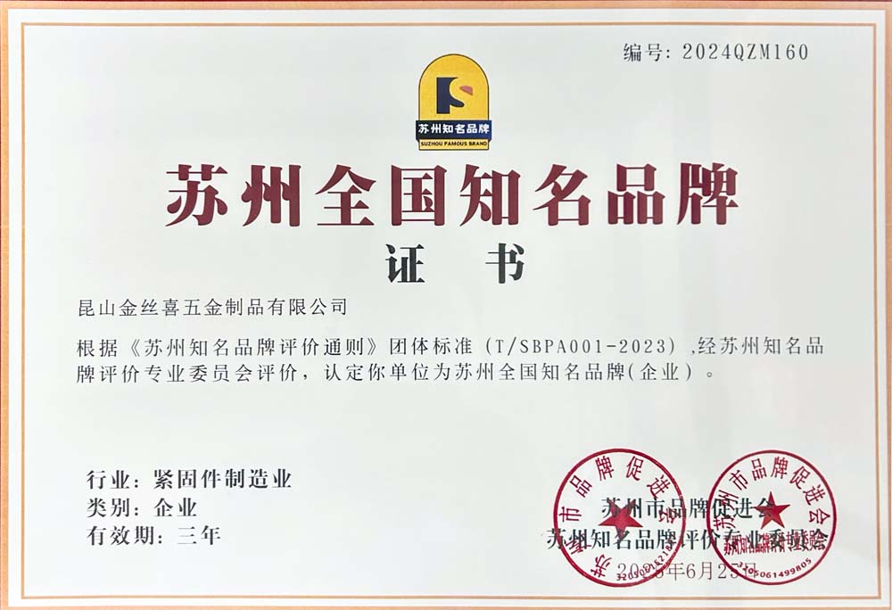 КуншанДжинсиксіКомпанія Metalware Co., ТОВ офіційно нагороджена званням "Національного відомого бренду в Сучжоу" за чудову якість продукції, провідну технологічну силу, всебічну систему обслуговування та широкий ринок!